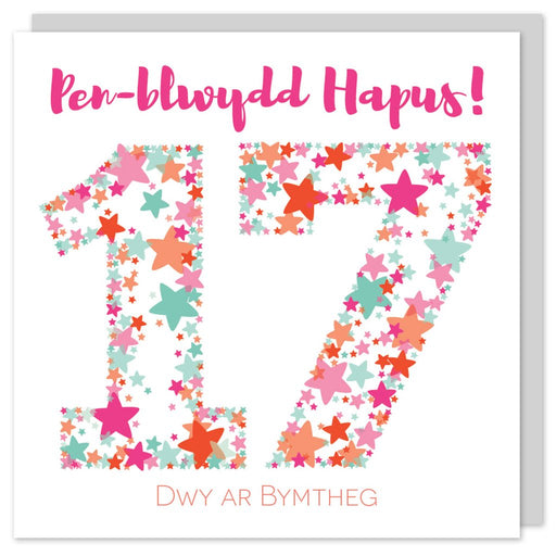Description This bright card is perfect to celebrate a special seventeenth birthday! 'Pen-blwydd hapus' is Welsh for 'Happy birthday' and 'Dwy ar b...
