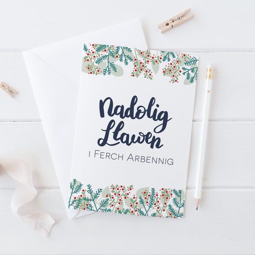 No reviewsDescription A festive card featuring hand-written text and original festive illustrations. 'Nadolig Llawen i Ferch arbennig' is Welsh for 'Merry Ch...