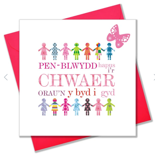 Description 'Pen-blwydd Hapus Chwaer' is Welsh for 'Happy Birthday Sister' This beautiful vibrant foiled Welsh Language Birthday card is from the a...