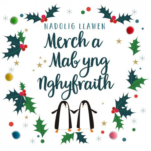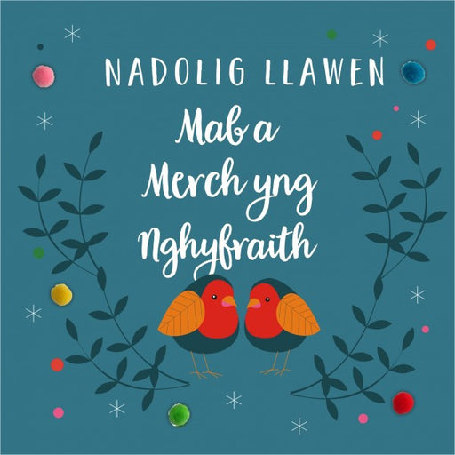 Description A delightfully joyous Welsh Language Christmas card. Striking images with contemporary bold colours, and hand finished with a pompom e...