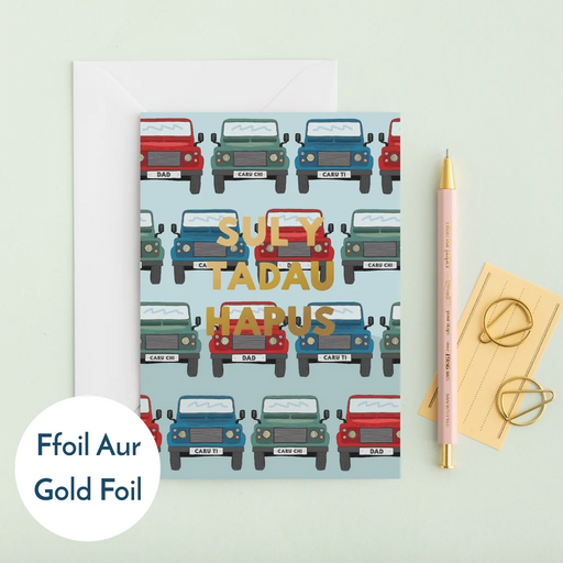 Welsh Father's day card 'Sul y Tadau Hapus' land rover