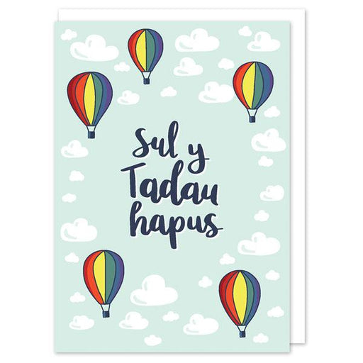 Description This colourful card for Father's Day features hand-written text and colourful hot air balloons. 'Sul y Tadau Hapus' is Welsh for 'Happy...