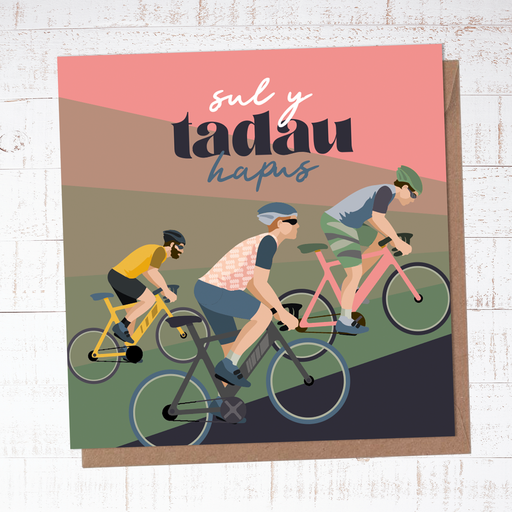 Welsh Father's day card 'Sul y Tadau Hapus' cyclist