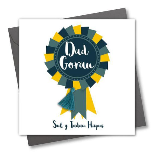 Welsh Father's day card 'Sul y Tadau Hapus, Dad,Rossette,Tassel