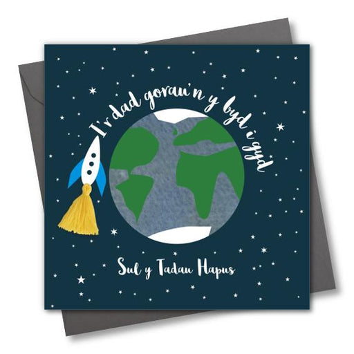 Welsh Father's day card 'Sul y Tadau Hapus, Dad,Rocket,Tassel