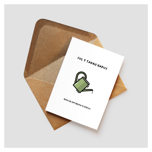 Description This illustrated card is perfect for Father's Day and features an image of a watering can. 'Diolch am helpu fi dyfu!' is Welsh for 'Tha...