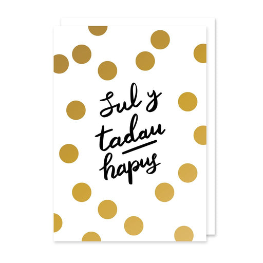 Description This card features hand written text and stunning gold foil.‘Sul y Tadau Hapus' is Welsh for 'Happy Father's Day'. Details Blank inside...