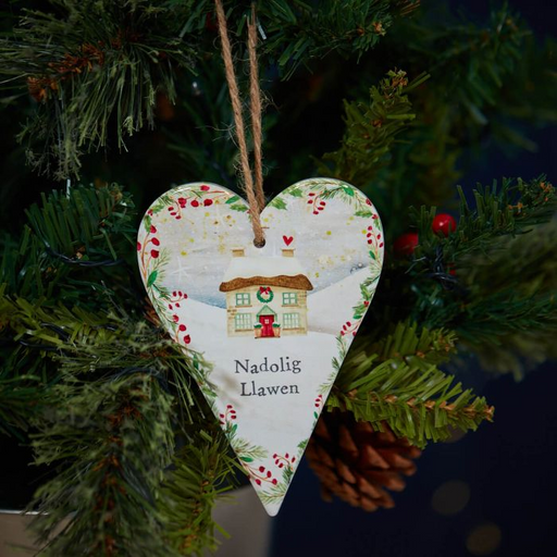 No reviewsDescription Ceramic Hanging Heart - 'Nadolig Llawen' is 'Merry Christmas' in Welsh With sparkly silver hanging ribbon, snowflakes and shiny stars. ...