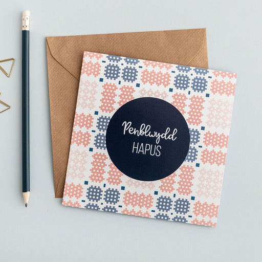 No reviewsDescription A contemporary card with a Welsh tapestry design. 'Penblwydd Hapus' is Welsh for 'Happy Birthday'. Details Blank inside for your own ...
