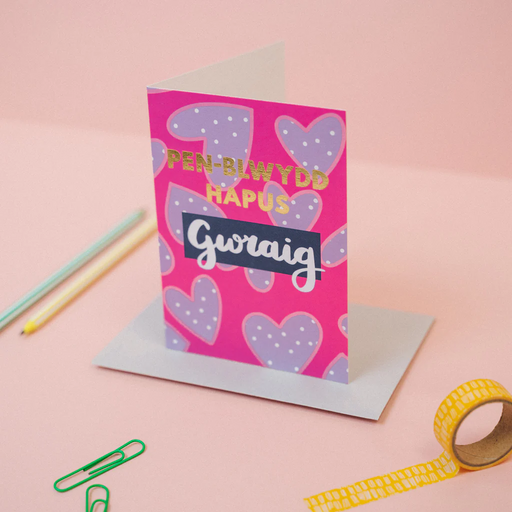 No reviewsDescription 'Pen-blwydd Hapus Gwraig' is Welsh for 'Happy Birthday Wife' This beautiful vibrant foiled Welsh Language Birthday card is from the ama...