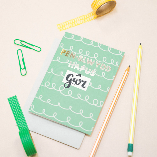 Description Send birthday wishes with this card featuring silver foil detail. 'Pen-blwydd hapus Gŵr' is Welsh for 'Happy birthday Husband'. Detail...