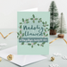 Send some Christmas wishes with this beautiful card featuring hand-written text and an original holly wreath illustration.