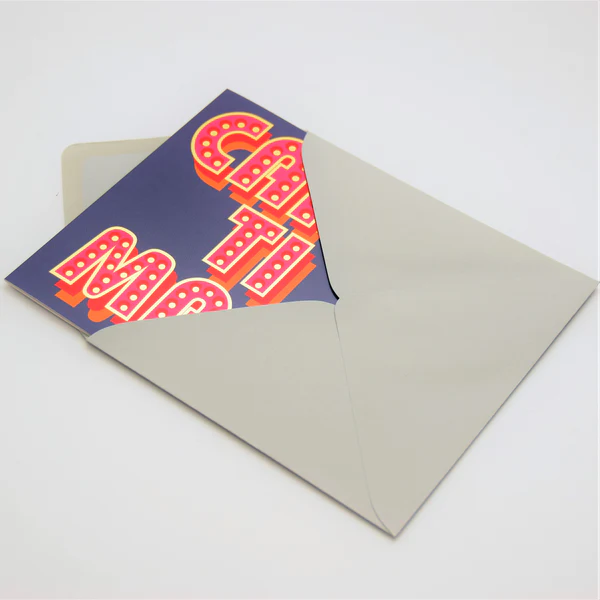 Designed with bright, fun, bold text, and the writing is foiled in shiny gold. Printed on high quality board from sustainable sources with a grey envelope, and each comes in a biodegradable bag.