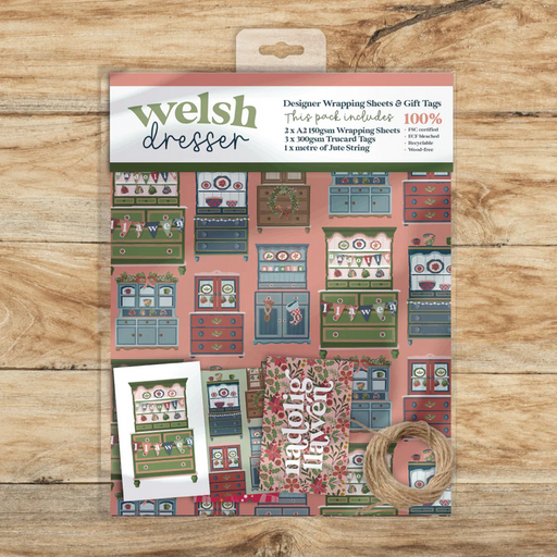 No reviewsDescription 2 sheets of recyclable wrapping paper, 3 matching gift and 1 metre of jute string in a compostable bag. This 'Welsh Dresser' design, re...
