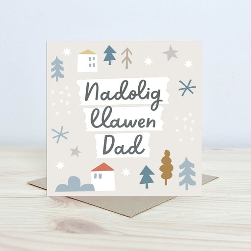 Welsh Christmas card with the words 'Merry Christmas Dad' in Welsh, 'Nadolig Llawen Dad'.