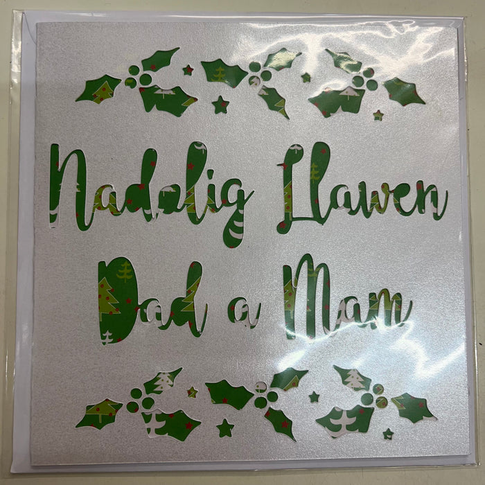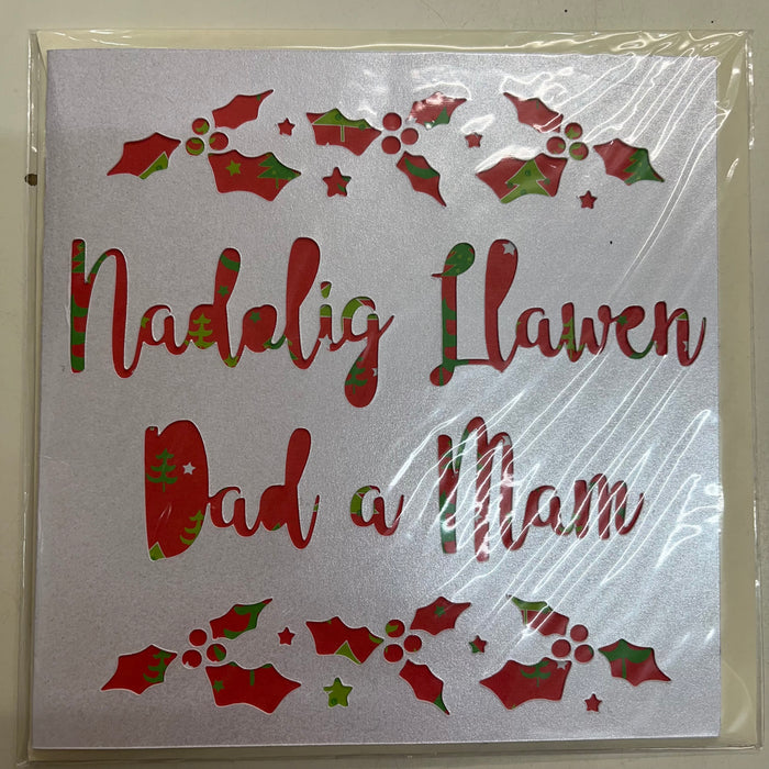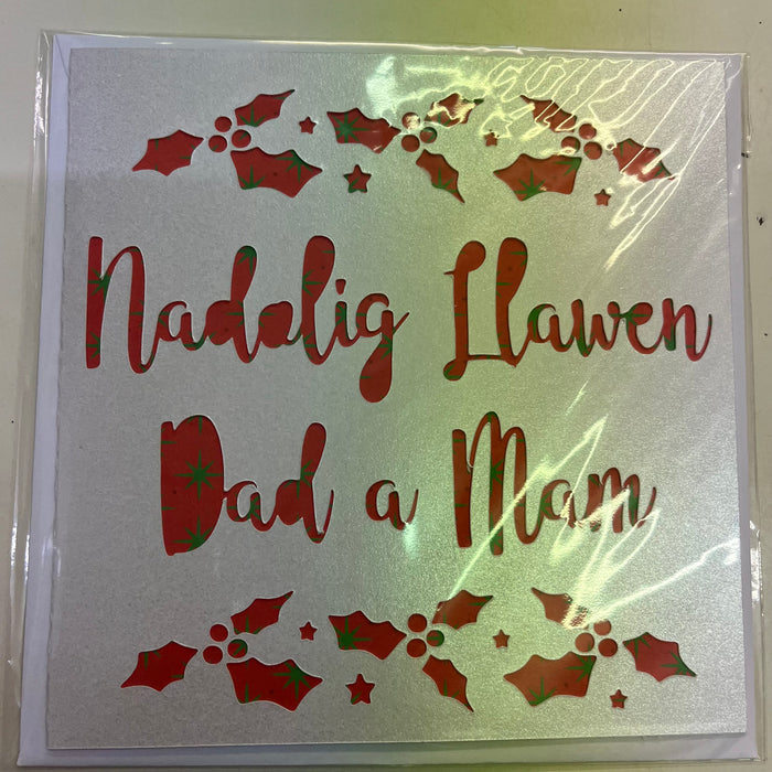 Christmas card 'Nadolig Llawen Dad a Mam' handmade papercut - parents