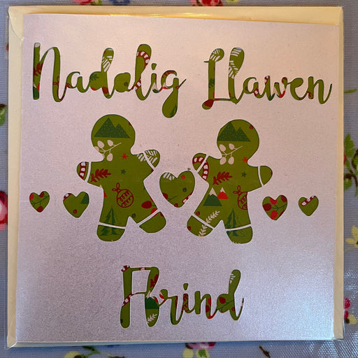 Christmas card 'Nadolig Llawen Ffrind' handmade papercut - friend