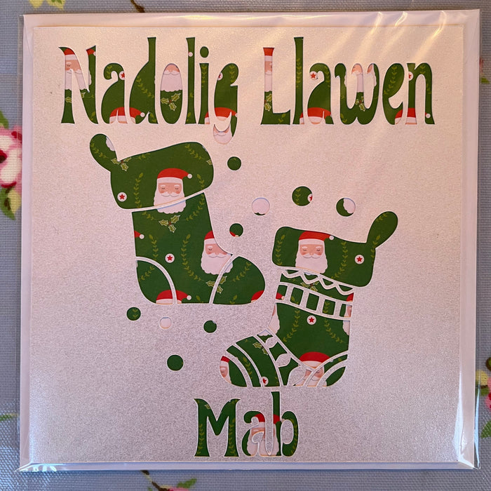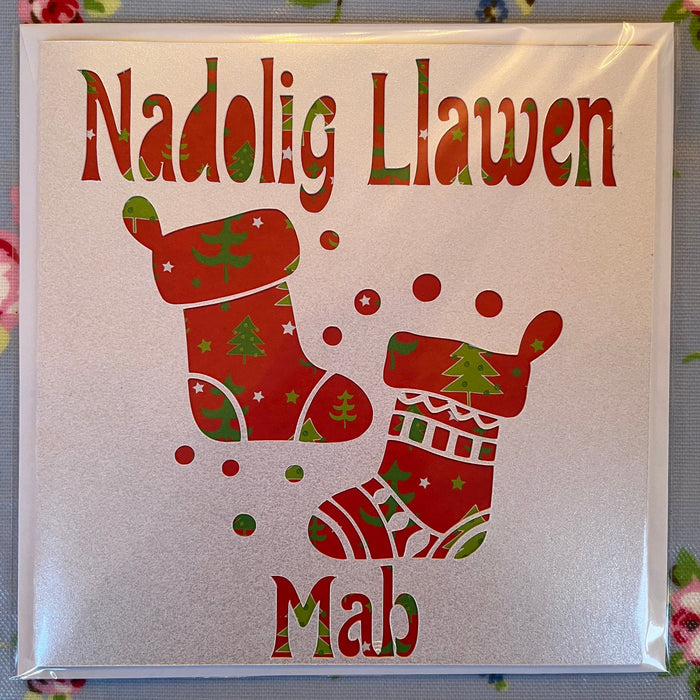 Christmas card 'Nadolig Llawen Mab' handmade papercut - son