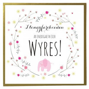 'Llongyfarchiadau ar enedigaeth eich Wyres' is Welsh for 'Congratulations on the birth of your Granddaughter'.