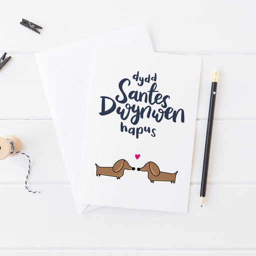 Love card 'Dydd Santes Dwynwen Hapus'Happy St Dwynwen's day - dachshunds