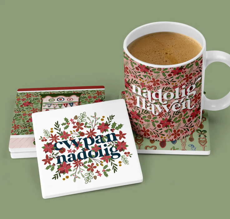 Welsh Christmas Coaster 'Cwpan Nadolig' Bouquet