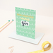 A bright and colourful Welsh birthday card featuring hand-written text and original illustrations, and is finished in gold foil.