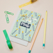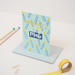 A bright and colourful Welsh birthday card featuring hand-written text and original illustrations, and is finished in gold foil.