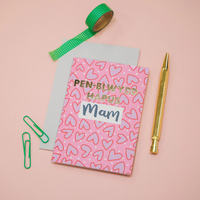 'Pen-blwydd Hapus Mam' is Welsh for 'Happy Birthday Mum'.