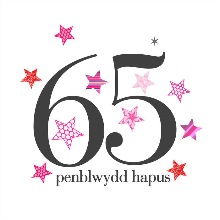 Gorgeous 65th birthday greeting card with beautiful bold colours and words.