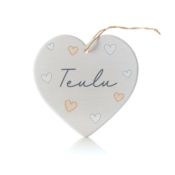 These heart shaped plaques are ceramic with a cork backing feature a hanging rope with a pretty love heart background and a heartfelt Welsh word, choose from: