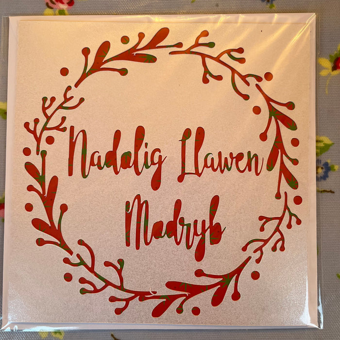 Christmas card 'Nadolig Llawen Modryb' handmade papercut - auntie