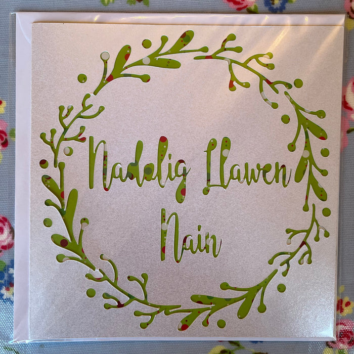 Christmas card 'Nadolig Llawen Nain' handmade papercut - gran