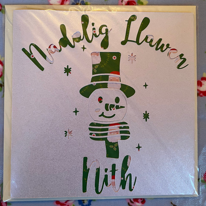 Christmas card 'Nadolig Llawen Nith' handmade papercut - niece