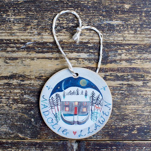 This Christmas decoration features a beautifully illustrated Christmas design featuring a snowy scene with a welcoming house. It makes a perfect keepsake to be brought out year after year.