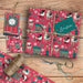 2 sheets of recyclable wrapping paper, 3 matching gift and 1 metre of jute string in a compostable bag.