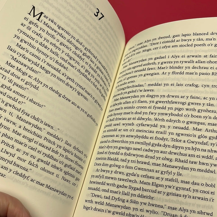 An adventure novel for the early teens - the first novel by the author of the stories about popular detective Taliesing MacLeavy. The hero is 15 year old mute, Manawydan Jones, who discovers that he is descended from Manawydan fab Llŷr of the Mabinogi. An easy read with serious themes, presenting a modern look at some Mabinogi tales for a young audience.