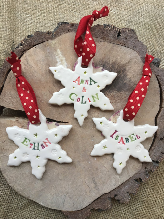 Choose one or two names on your decoration - please be aware that the maximum number of letters on a snowflake are 7.
