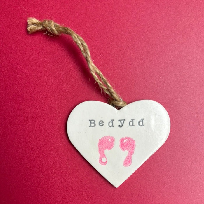 Also available with 'Bedydd' (Baptism or Christening in Welsh) and pink or blue footprints.
