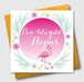 In pale pinks and greens, this card has pretty foliage and flowers and features a beautiful pink flamingo.