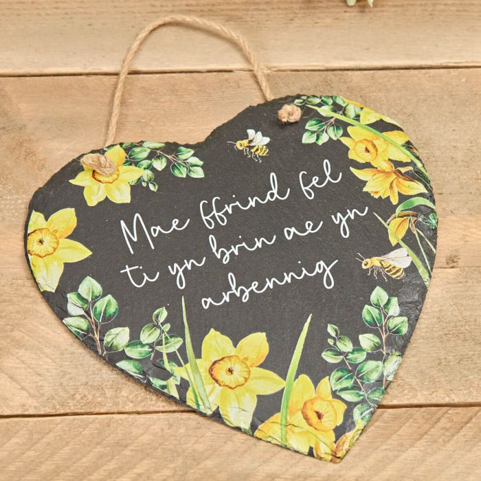 Heart Slate Plaque - Mae Ffrind fel ti yn Brin ac Arbennig - Floral