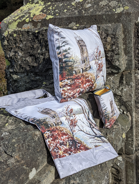 This beautiful pouch is made from cotton fabric and features an amazing image of Lake Vyrnwy.  The yellow lining is striking, and complements the artwork perfectly.