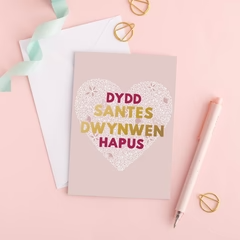 Love card 'Dydd Santes Dwynwen Hapus' gold foil
