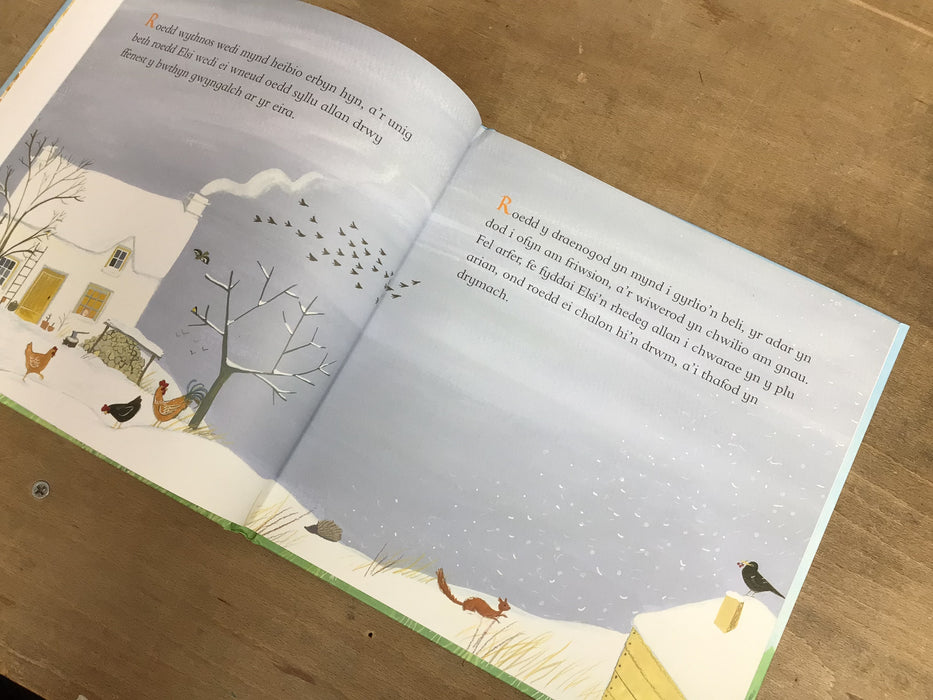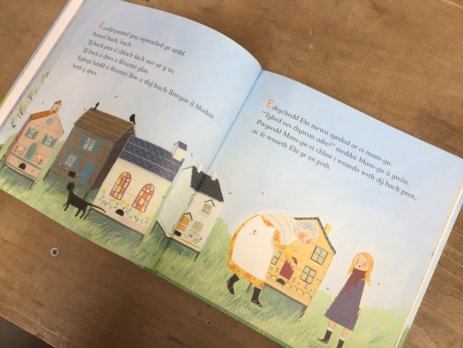 Another charming, volume by Caryl Lewis and Valériane Leblond, following their success with Sgleinio'r Lleuad which was shortlisted for the 2015 Tir na n-Og Prize. Elsi lives with her grandmother, a beekeeper. By following the bees, and taking note of how the garden changes all through the year, Elsi comes to love each season.