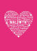 'Maldwyn' is Welsh for 'Montgomeryshire'. The card features the names of towns and villages in Montgomeryshire in a heart shape. The card was designed for the 2015 National Eisteddfod of Wales in Meifod.