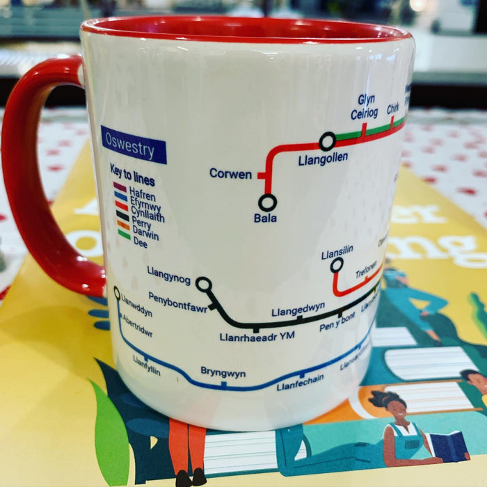 What if Oswestry had its own metro system? Start your day with a trendy and colourful transport mug to guide you through Oswestry and the surrounding area.