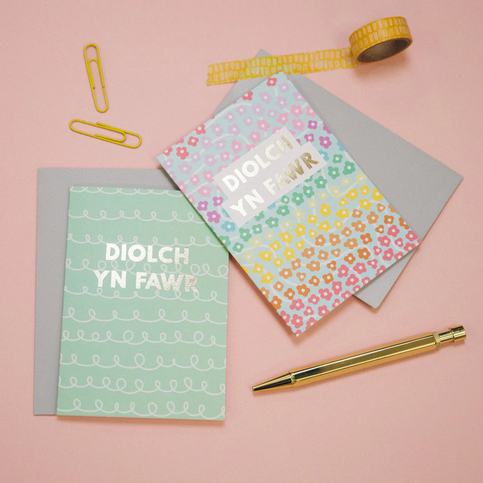 Set of 4 Welsh thank you cards 'Diolch yn Fawr'
