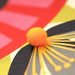 A contemporary Welsh language birthday card with a mix of bright bolds colours and hand finished with cute colourful pompom embellishments and floral pattern.