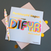 Designed with bright, fun, bold text, and the writing is foiled in shiny gold. Printed on high quality board from sustainable sources with a grey envelope, and each comes in a biodegradable bag.