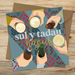 A stunning card with a beautiful blue background featuring a gorgeous tapestry pappern and everyone saying "cheers" to 'Sul y Tadau Hapus.'