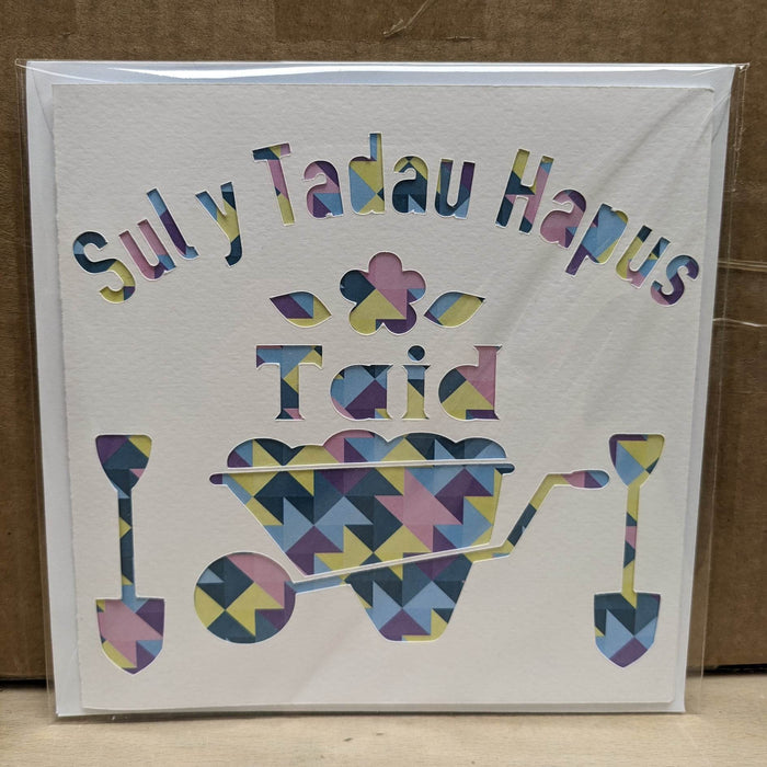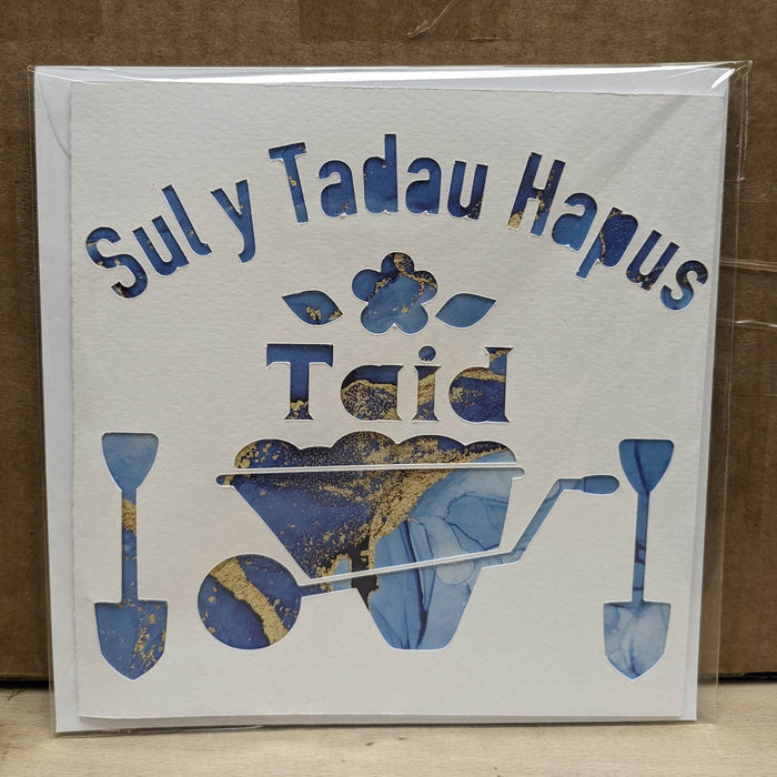 Welsh Father's day card 'Sul y Tadau Hapus Taid' handmade papercut - gardening